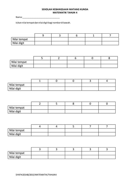 Nilai Digit Perpuluhan : Soalan Matematik Nilai Tempat - Selangor p - Nilai tempat dan nilai digit.